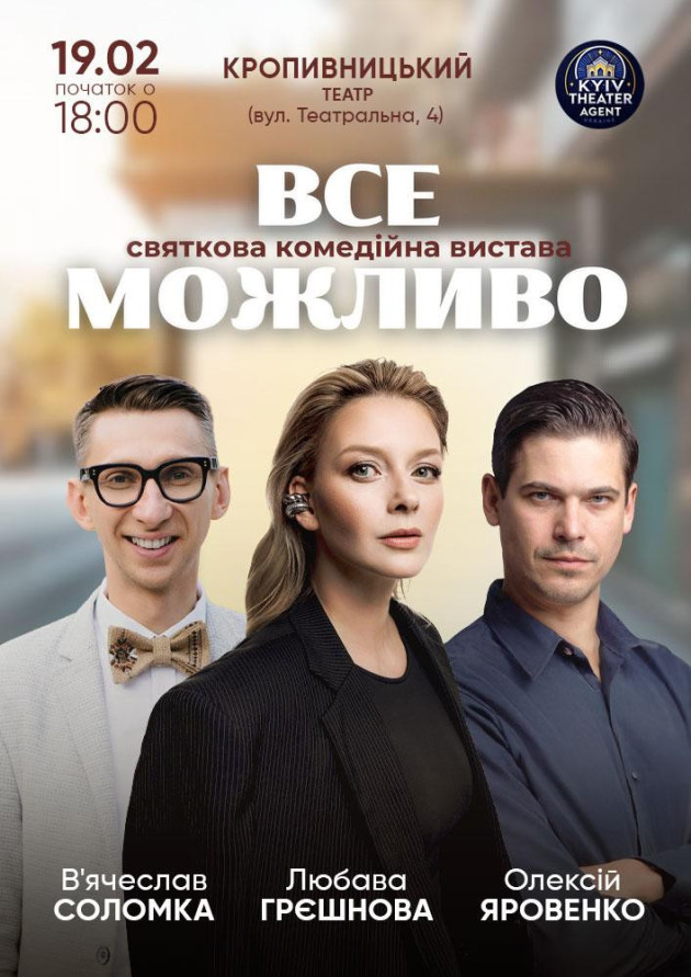 Актори: Любава Грєшнова, В`ячеслав Соломка, Олексій Яровенко